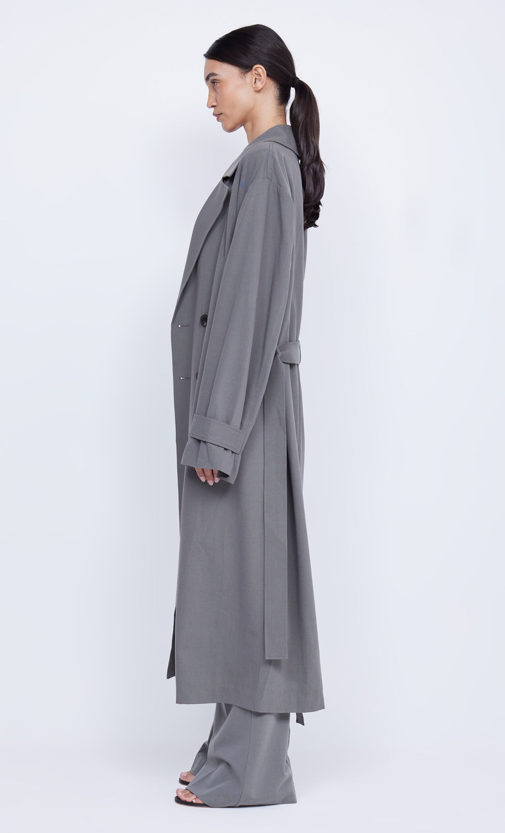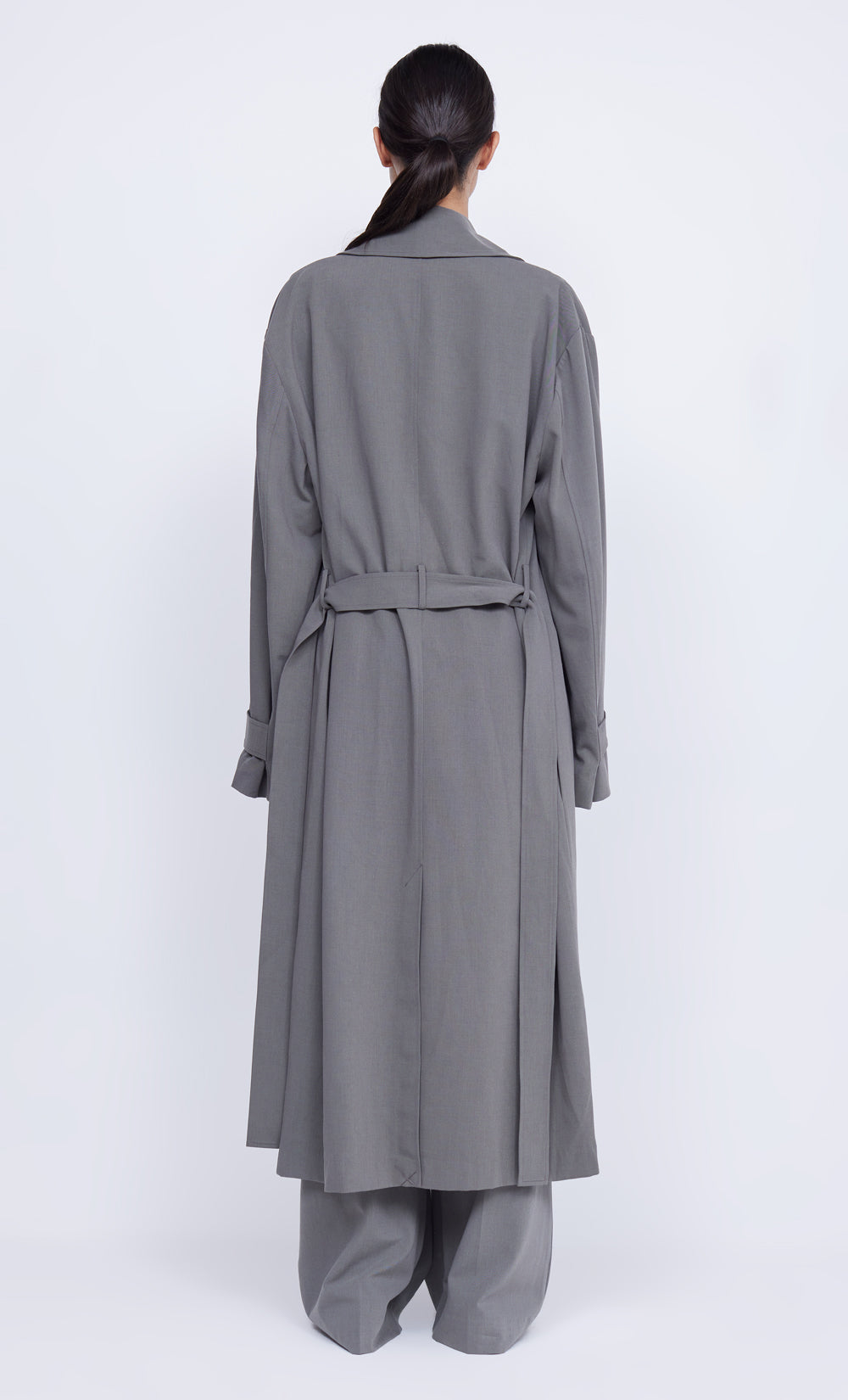 The Aneira Trench Coat is an oversized double breasted style cut from a wool blend. The coat features notch lapel details, relaxed drops shoulders, pockets, 6 button closure and a removeable waist tie.