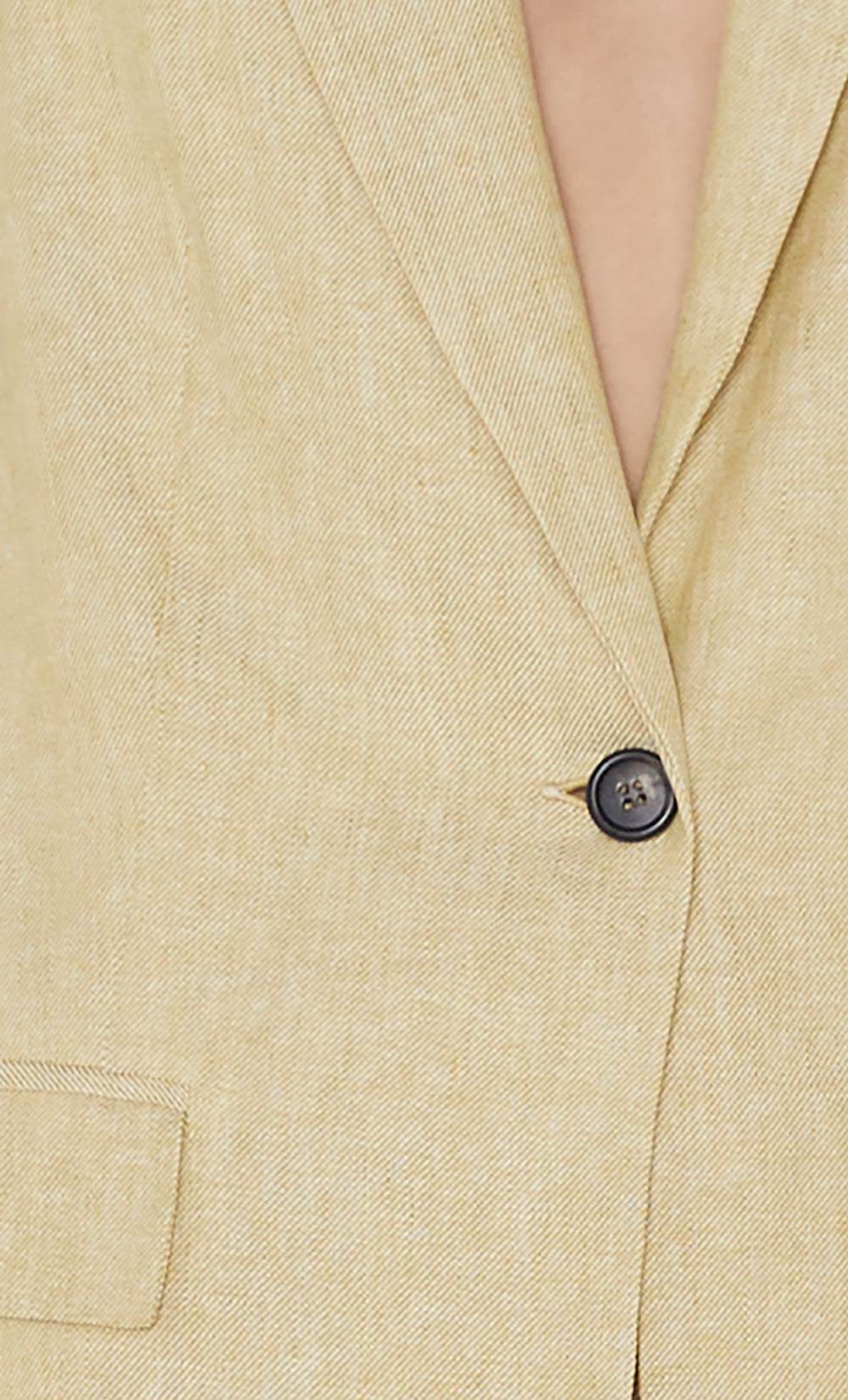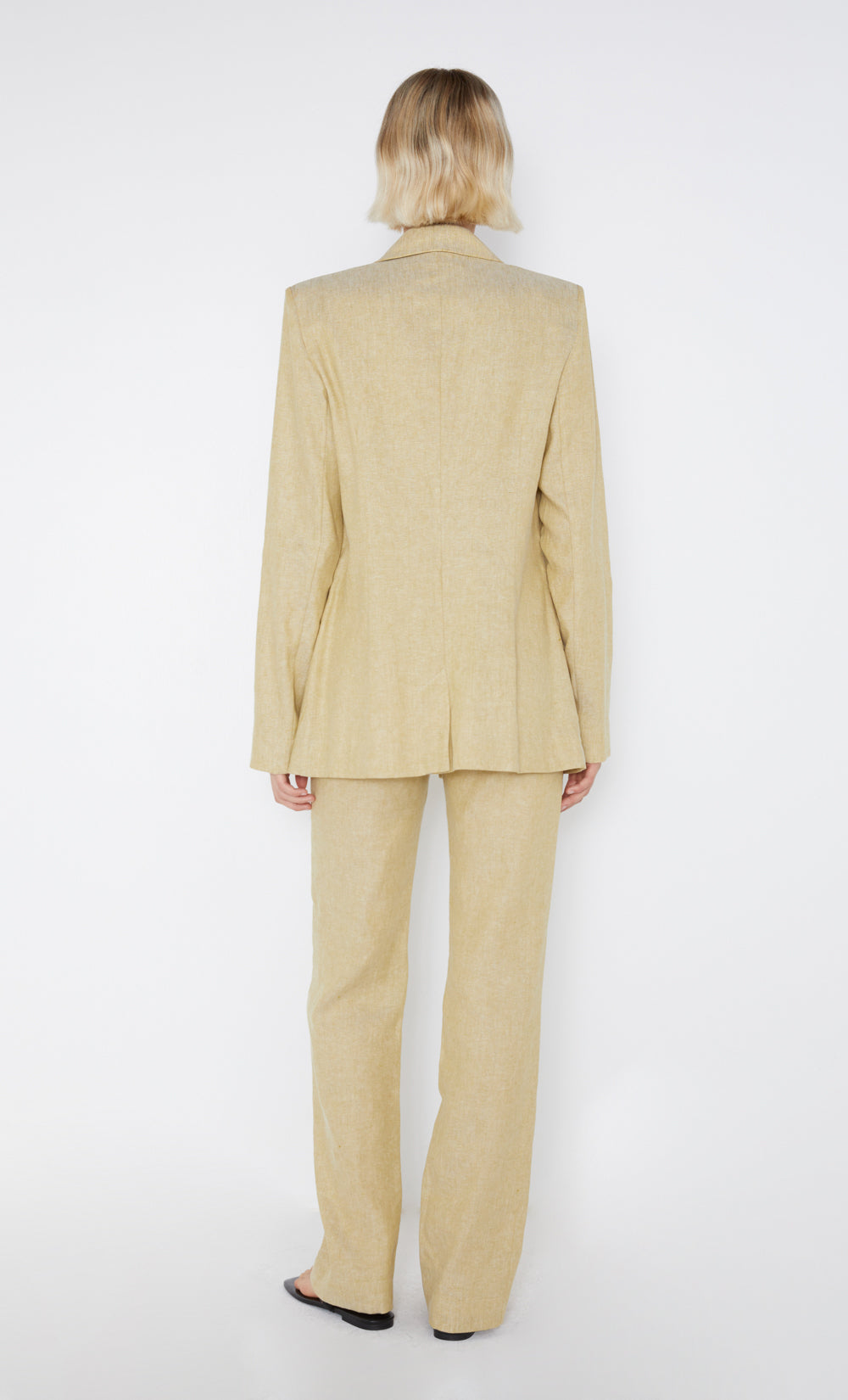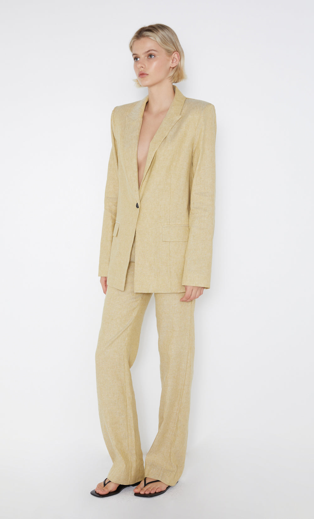 The Belleann Blazer is crafted from a linen, cotton blend fabric in a classic silhouette. The tailored blazer is a single breasted style featuring notch lapel, front pockets and a back vent opening. Styled with our BEC + BRIDGE Neva Straight Leg Pant.
