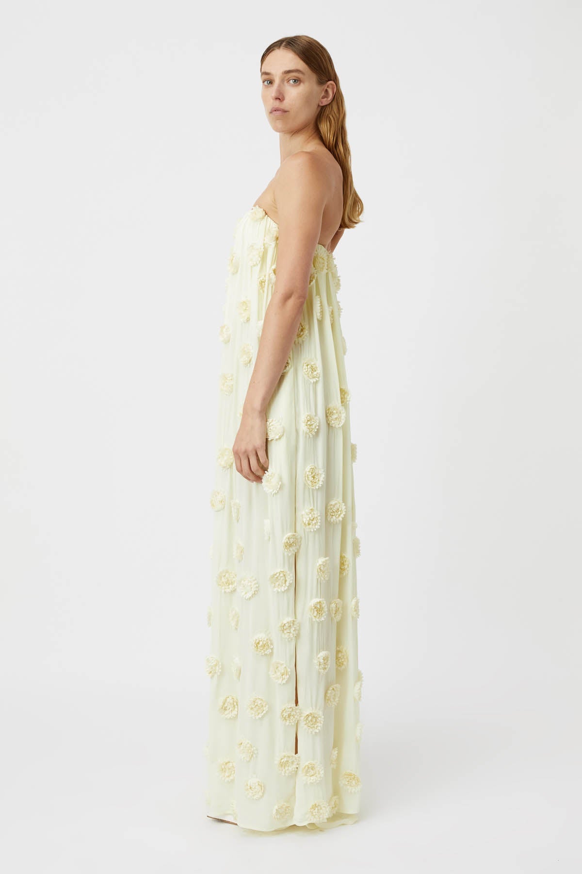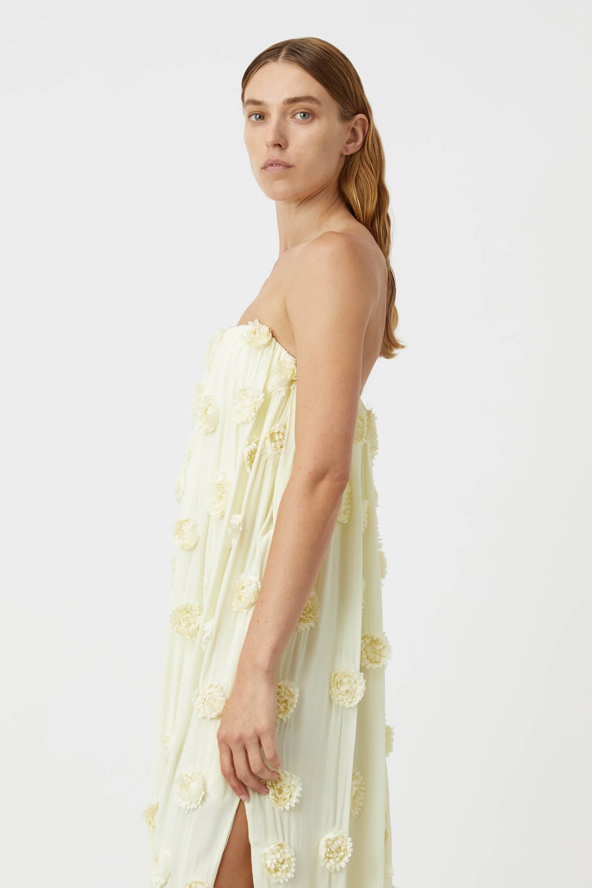 - Dot embroidered strapless dress