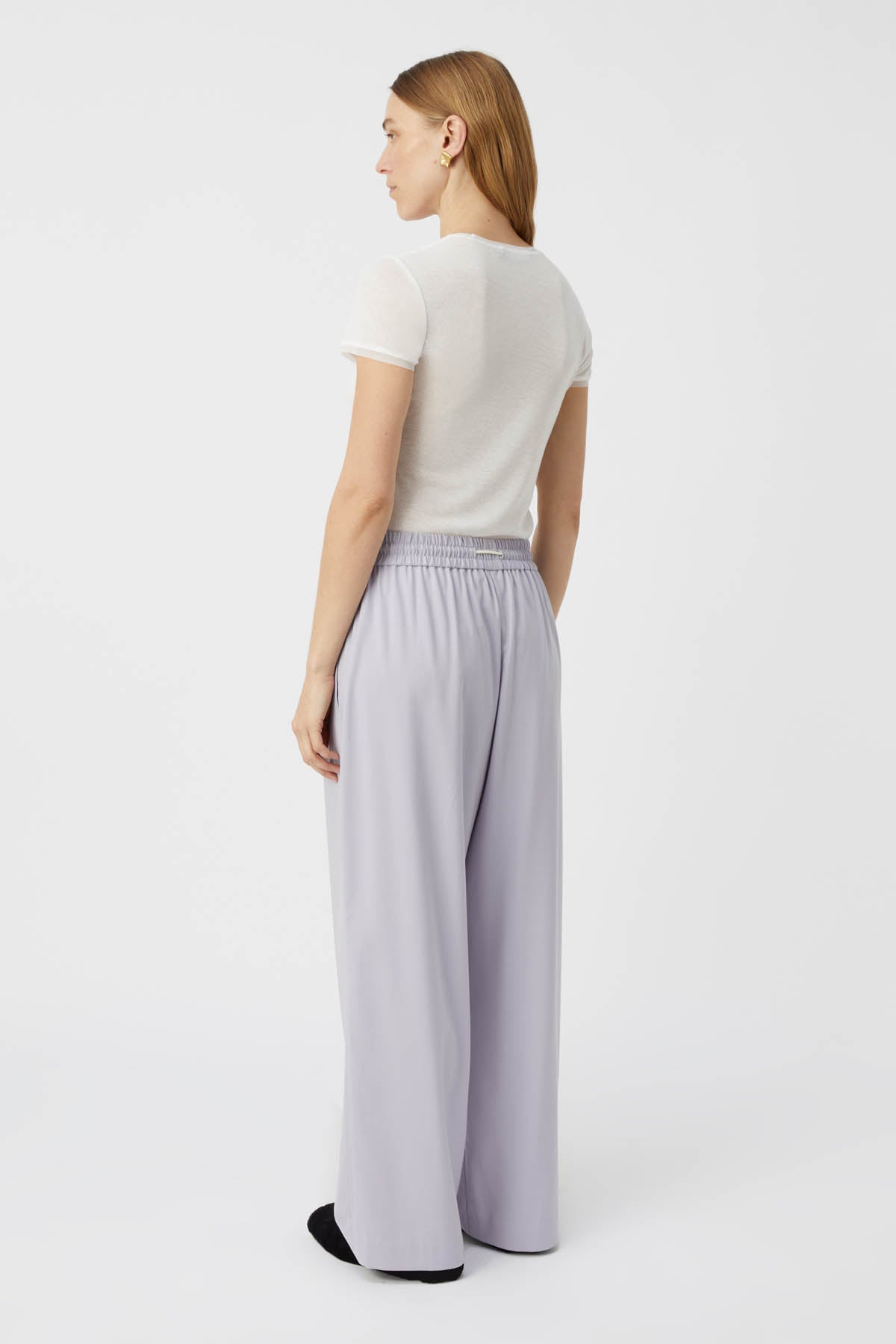• Exposed drawcord and eyelet detail at back waistband