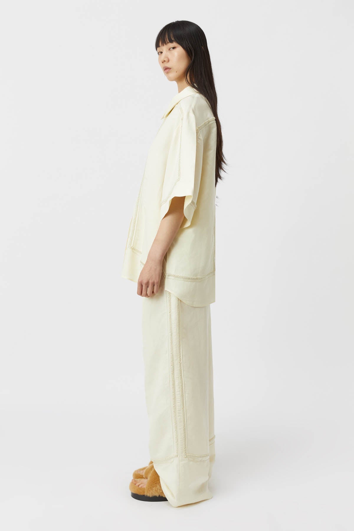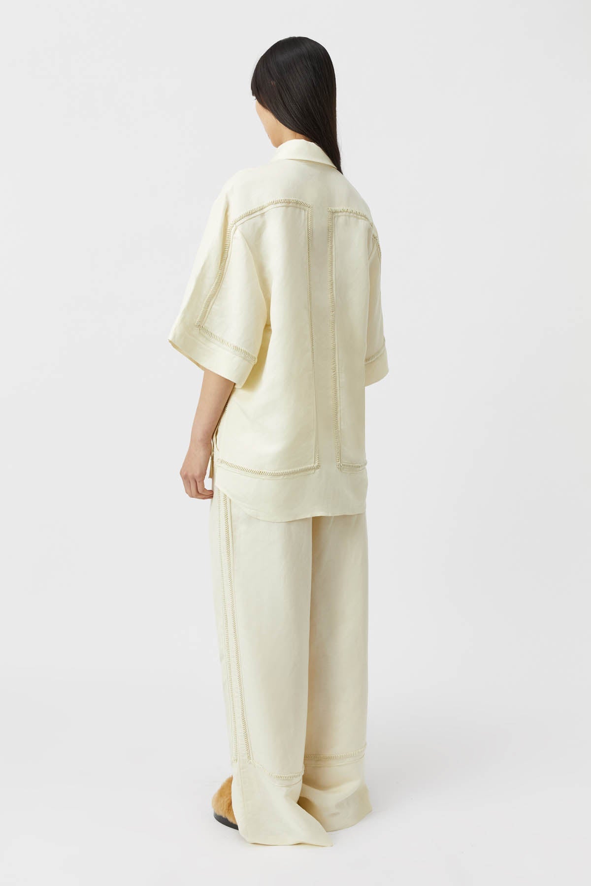 - Concealed button placket with specialty corozo buttons